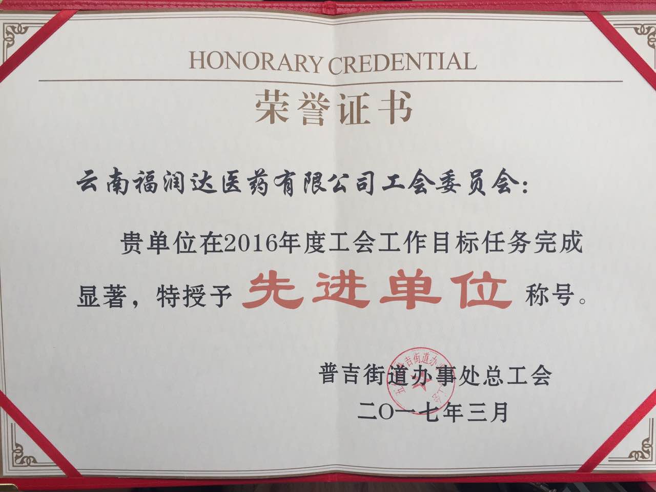 其中,公司工会荣获“目标任务完成先进单位”称号,工会主席米军荣获“先进工会工作者”称号。新的一年,工会将珍惜荣誉、再接再厉、团结协作,争取在2017年取得好成绩!
