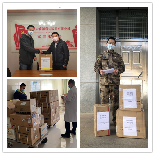 面对疫情,1月25日(大年初一)云南福润达医药有限公司成立了以总经理张春生同志为组长的“防控疫情 共同行动”防疫物资应急小组,公司党员、骨干力量积极参与其中。同时,福润达公司党支部对公司所有员工提出要求:1、为应对此次疫情,公司采购的所有紧急防护物资以捐赠的方式提供给各医疗机构和有关单位;委托公司采购的单位防护物资在不加价的原则下给予采购支持,全力做好应急保障及服务工作。2、在此次疫情保障工作中,所有福润达人必须坚守底线,不为利益所惑,坚守福润达道德底线;3、公司所有党员、预备党员、积极份子、骨干力量要在此次防控疫情工作中充分发挥先锋模范及核心引领作用;4、公司所有员工要全力配合所属社区工作人员的防疫管理工作,不给社区防疫管理增加负担。